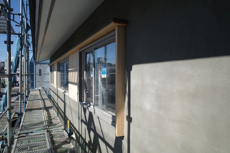 養生期間を経て第二段階のラスモルタル塗りに入りました。