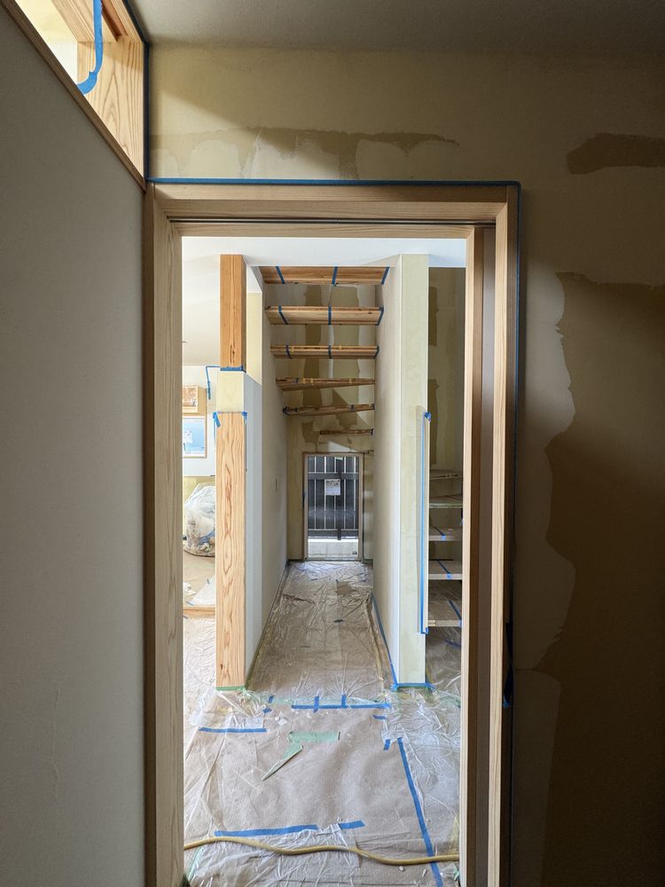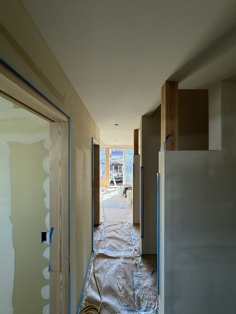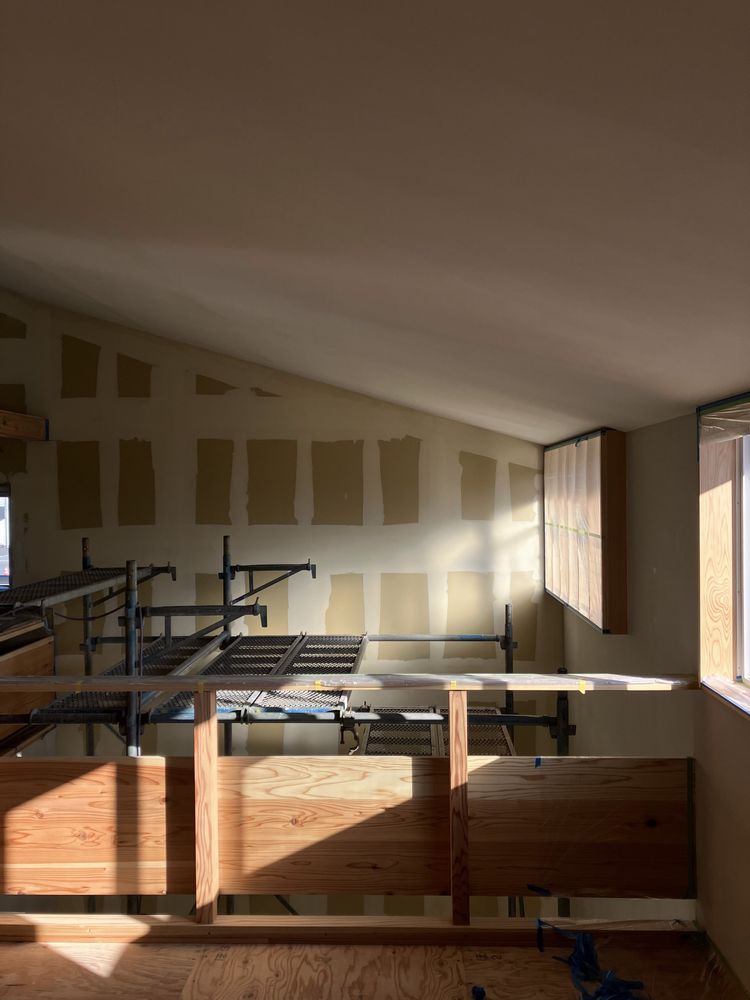 現場の進捗は、内装仕上工事で天井と壁を仕上げ塗り中