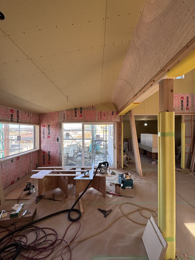 進捗は、大工工事が佳境を迎えていて、日に日に変わっていく現場となっています