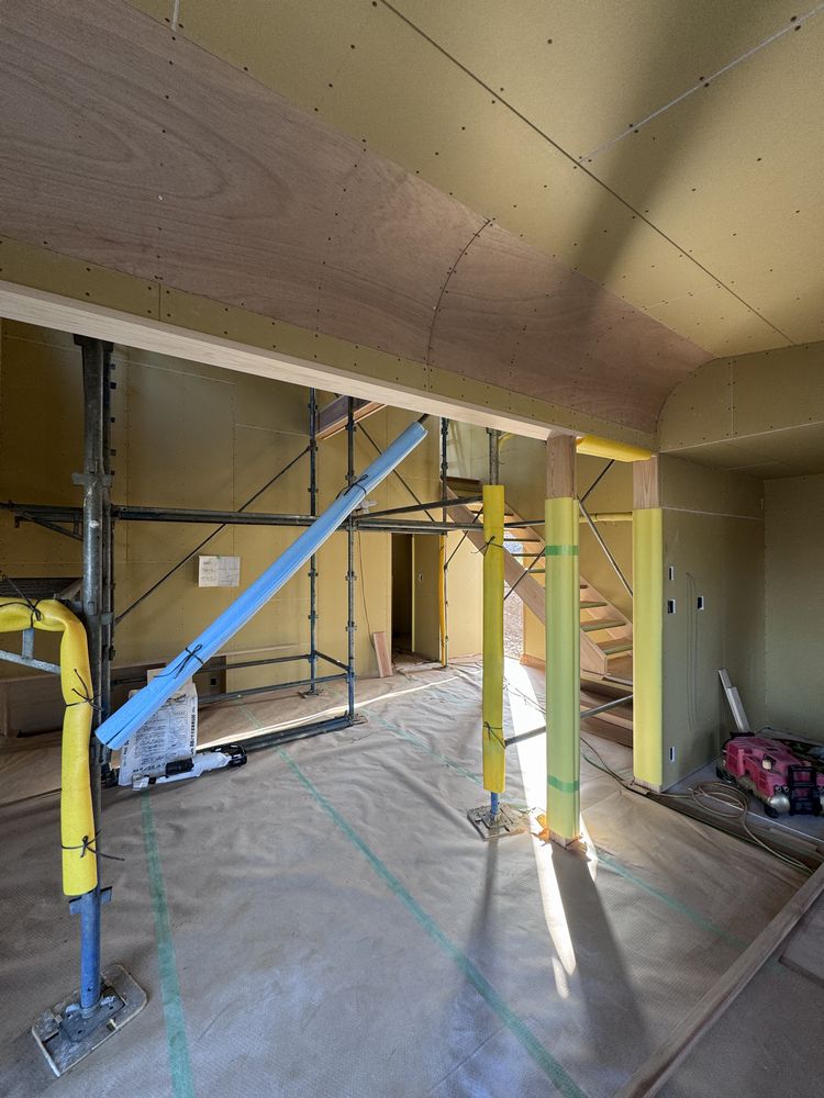 内部塗装工事が終わり、塗り壁工事へと進んでいきます