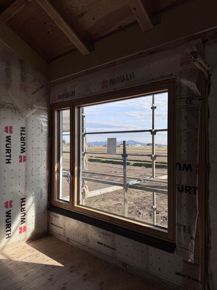 木製サッシも取り付けられ、ホッとひと安心したところで丸山さんと現場定例